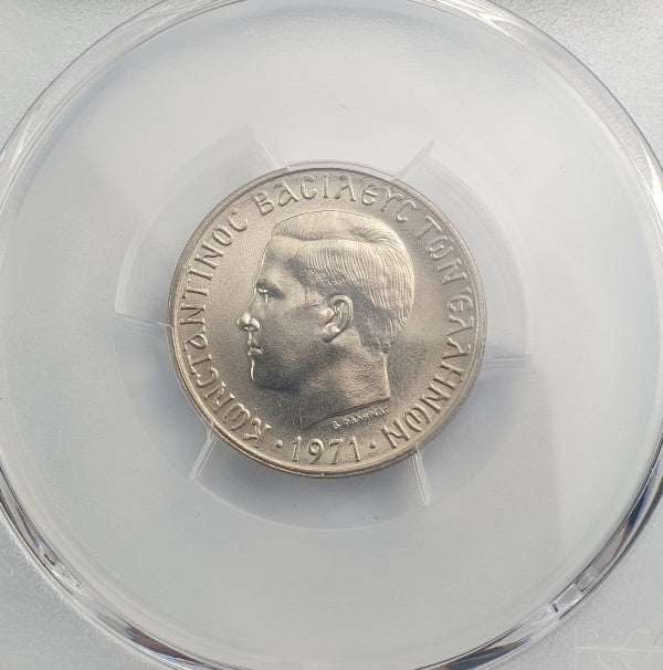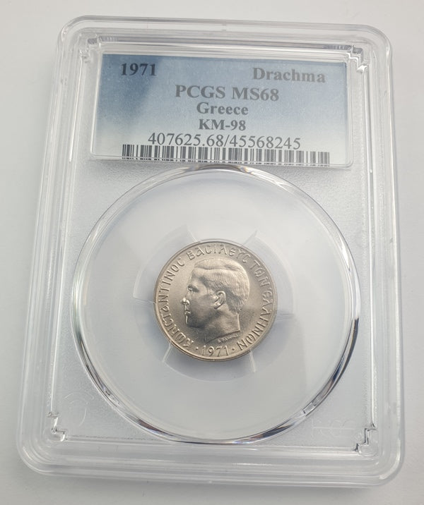 Greece - 1 Drachma 1971 (MS 68), KM-98, Constantine II top pop in both companies