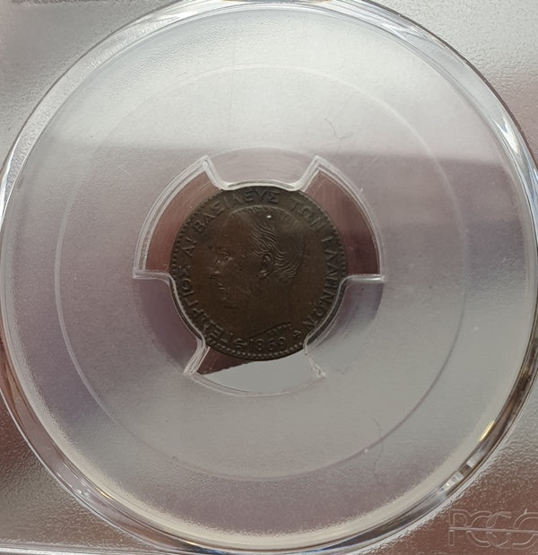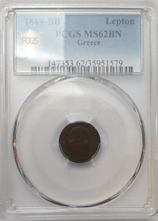 Greece - 1 Lepton 1869-BB (MS 62 BN), George I