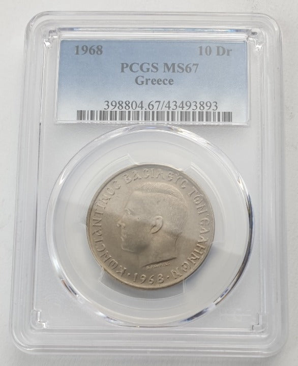 Greece - 10 Drachmas 1968 (MS 67), Constantine II