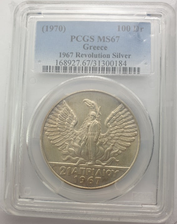 Greece - 100 Drachmai 1970 (MS 67), National Revolution, Silver