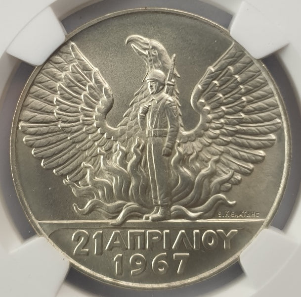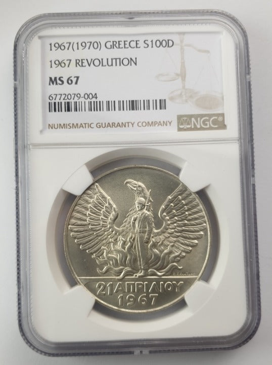 Greece - 100 Drachmas 1967(1970) (MS 67), Revolution, Constantine II, Silver