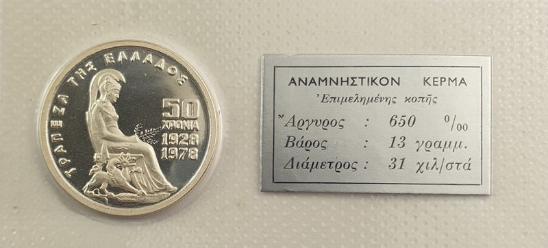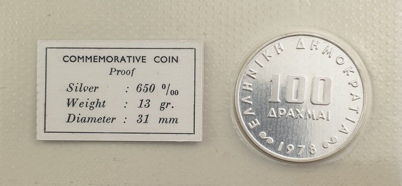 Greece - 100 Drachmas 1978, Bank Anniversary, Silver PROOF