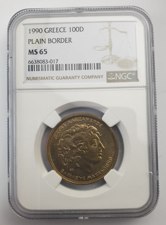 Greece - 100 Drachmas 1990 (MS 65), Plain Border