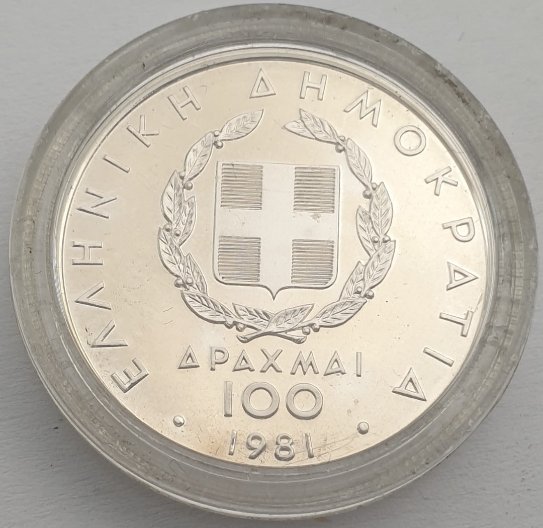 Greece - 100 Drachmes 1981, Pan-European Games, Silver