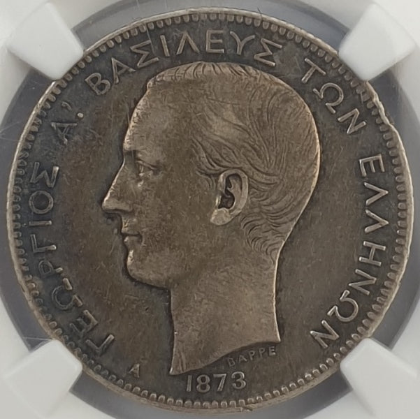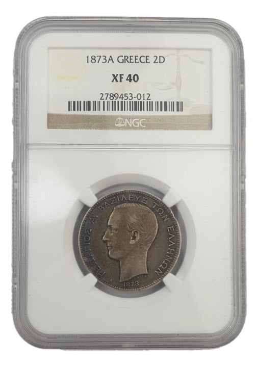 Greece - 2 Drachmas 1873A (XF 40), George I, Silver
