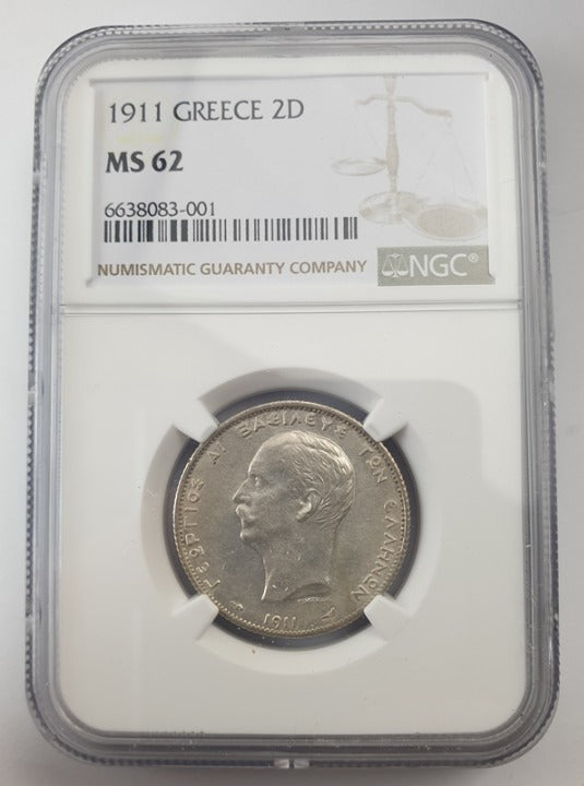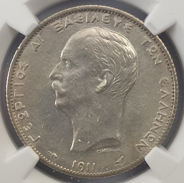 Greece - 2 Drachmas 1911 (MS 62), George I, Silver