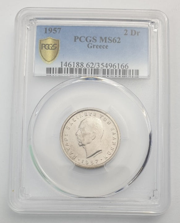 Greece - 2 Drachmas 1957 (MS 62), Paul I