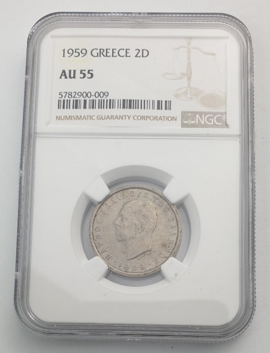 Greece - 2 Drachmas 1959 (AU 55), Paul I