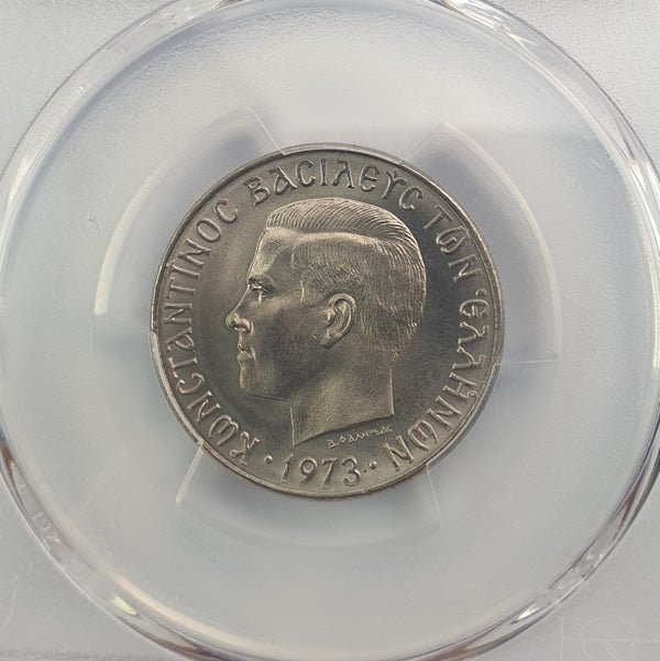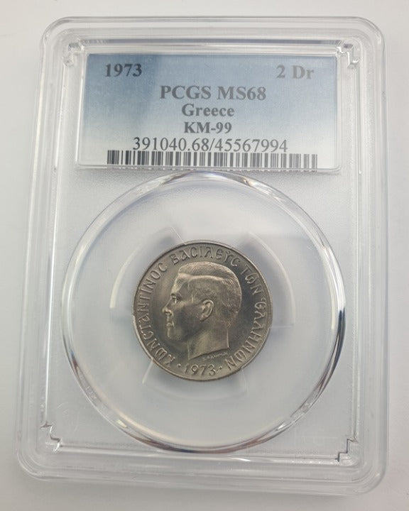 Greece - 2 Drachmas 1973 (MS 68), KM-99, Constantine II top pop in both companies