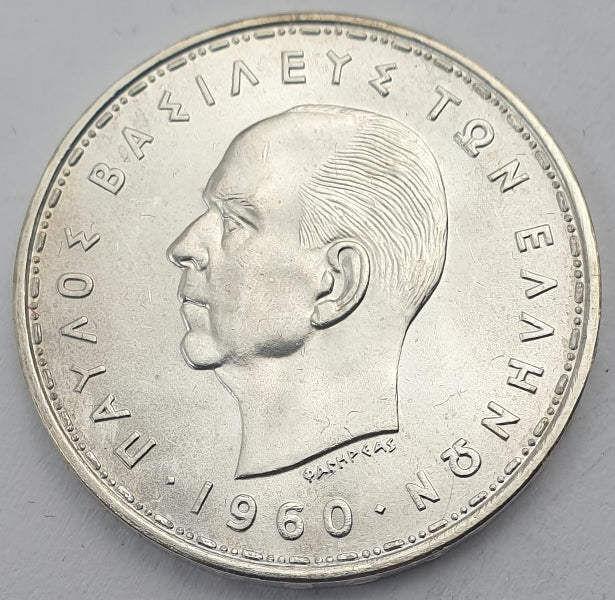 Greece - 20 Drachmas 1960, Paul I, Silver UNC