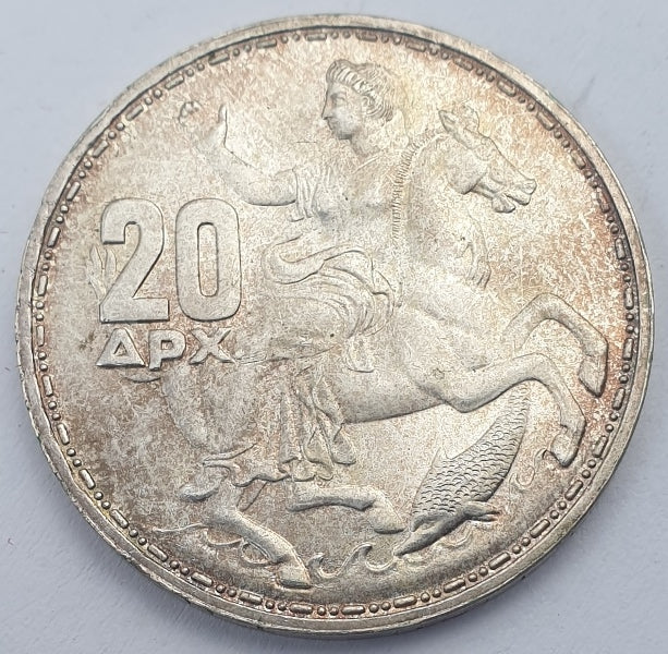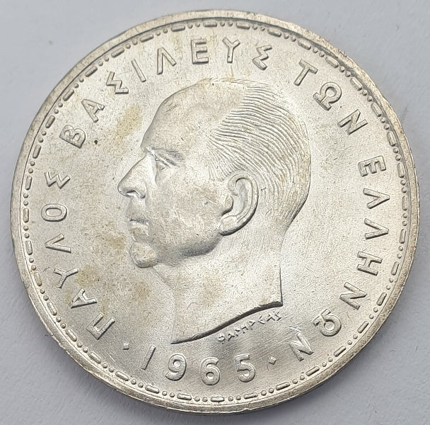 Greece - 20 Drachmas 1965, Paul I, Silver UNC
