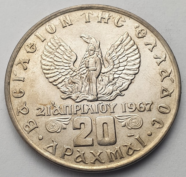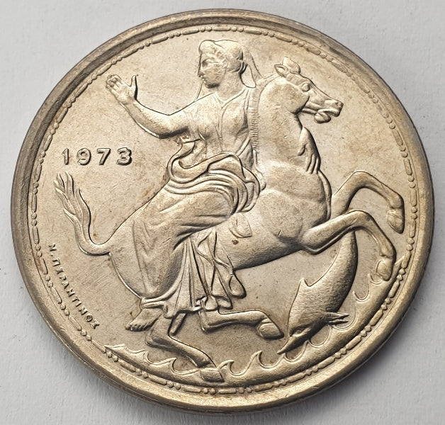 Greece - 20 Drachmas 1973, Constantine II, (Φαρδύ Περιθώριο), UNC