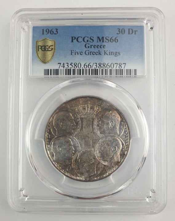 Greece - 30 Drachmas 1963 (MS 66), Five Greek Kings, Paul I, Silver