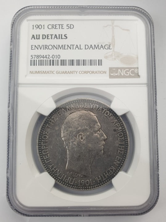 Greece - 5 Drachmas 1901 (AU DETAILS), Environmental Damage, Crete, Silver