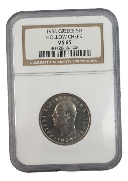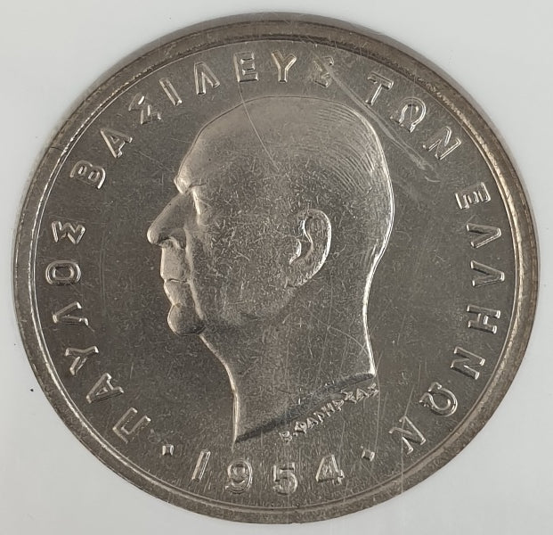 Greece - 5 Drachmas 1954, Hollow Cheek (MS 65), Paul I