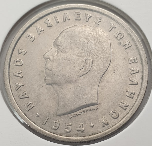 Greece - 5 Drachmas 1954, Paul I, (Κανονικό Μάγουλο), UNC