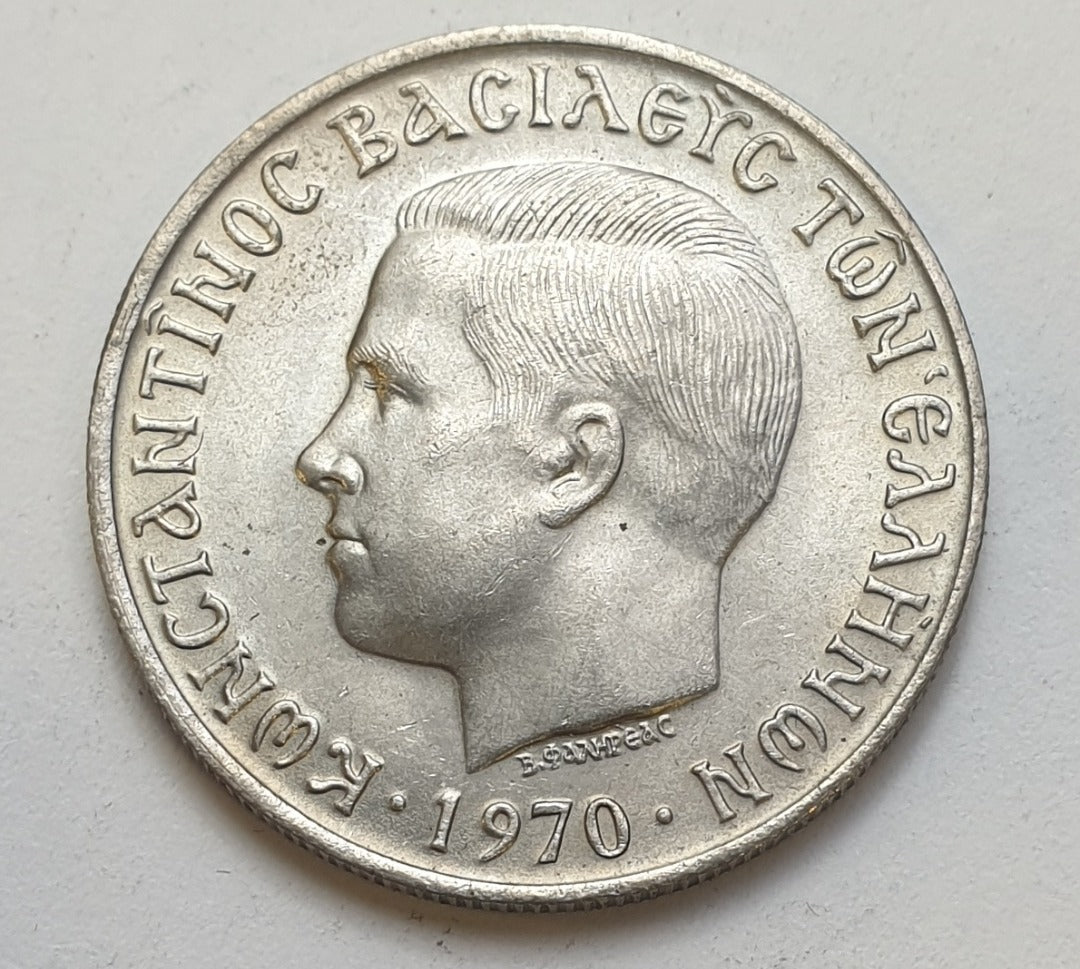 Greece - 5 Drachmas 1970, Constantine II, UNC