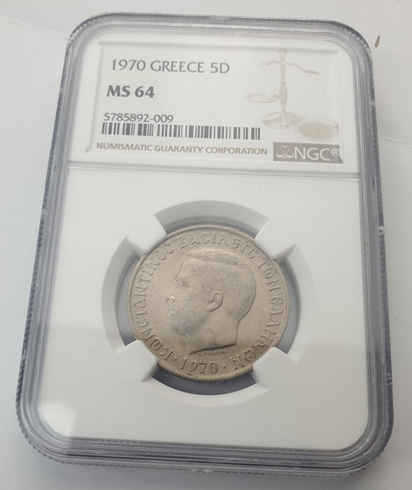 Greece - 5 Drachmas 1970 (MS 64), Constantine II