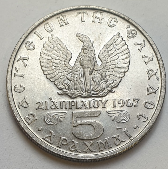 Greece - 5 Drachmas 1973 A, Constantine II, UNC