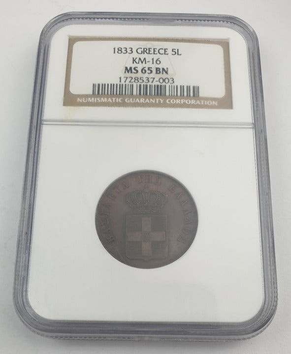 Greece - 5 Lepta 1833 (MS 65 BN), KM-16, Othon