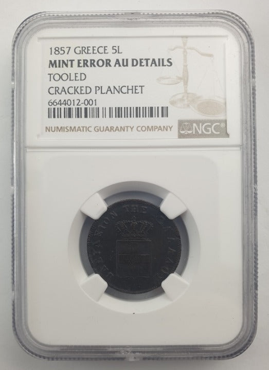 Greece - 5 Lepta 1857, (AU DETAILS) MInt Error, Tooled Cracked Planchet, Othon