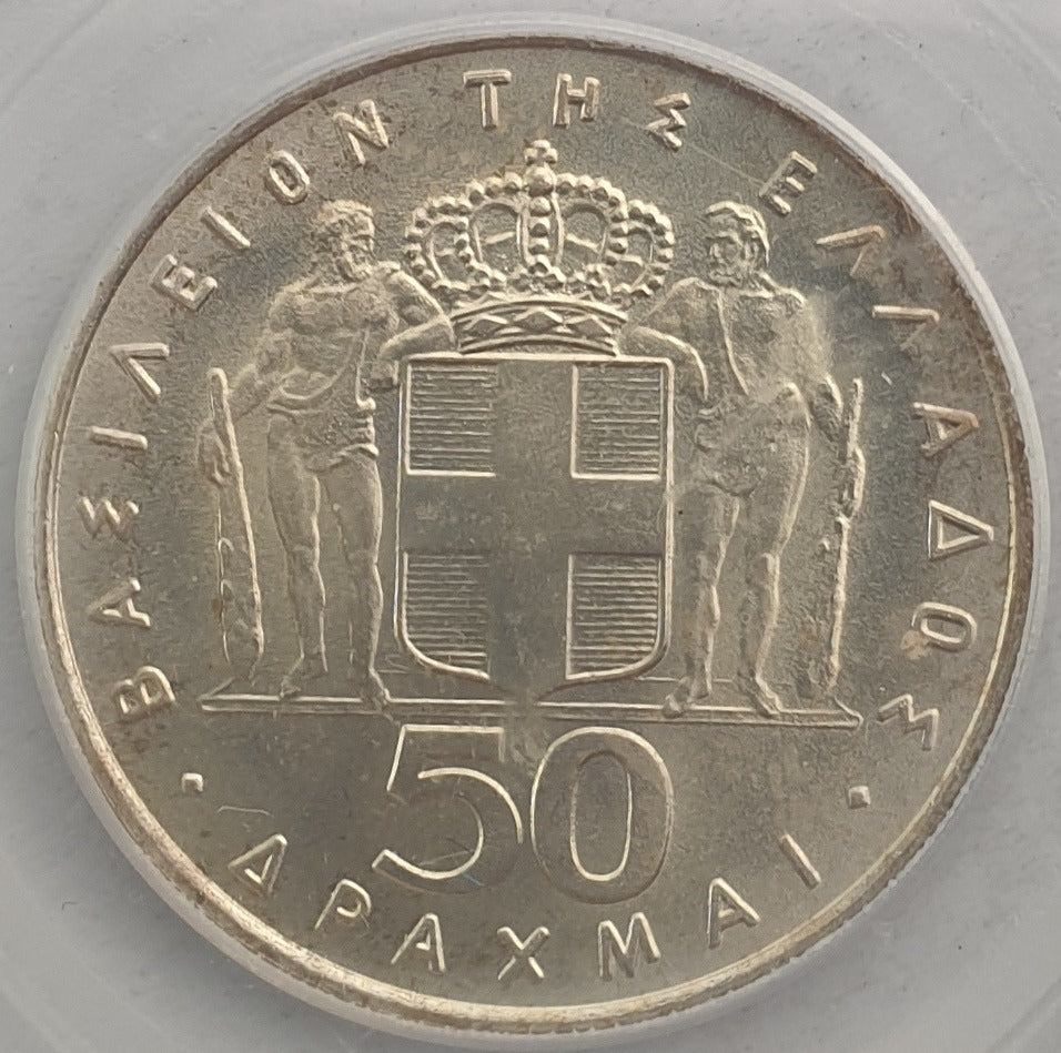 Greece - 50 Drachmai 1967 (MS 65), National Revolution, Silver