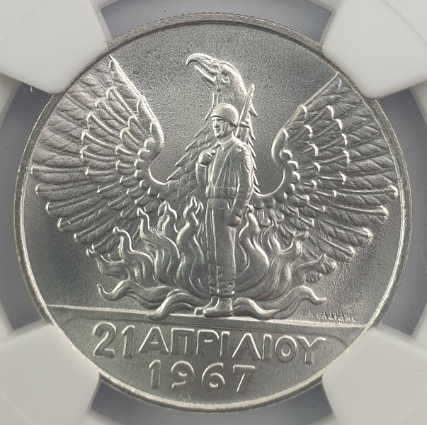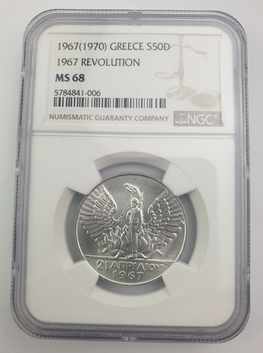 Greece - 50 Drachmas 1967(1970) (MS 68), 1967 Revolution, Constantine II, Silver