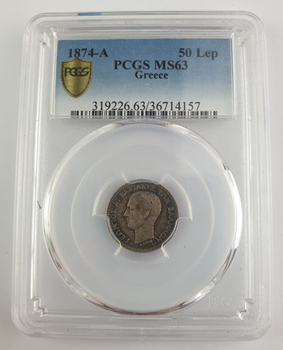 Greece - 50 Lepta 1874-A (MS 63), George I, Silver