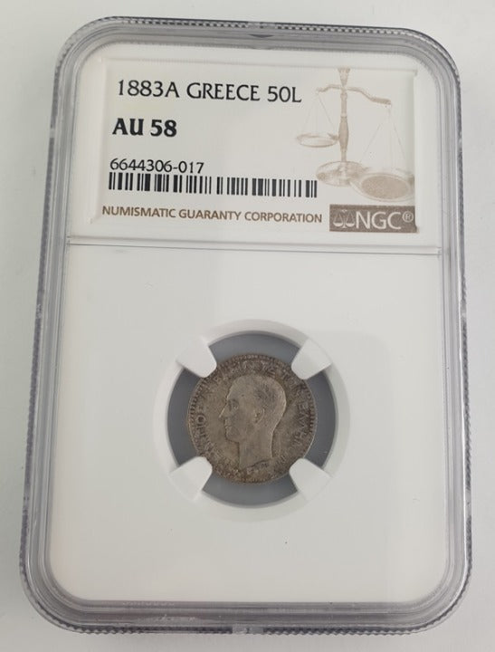 Greece - 50 Lepta 1883A (AU 58), George I, Silver