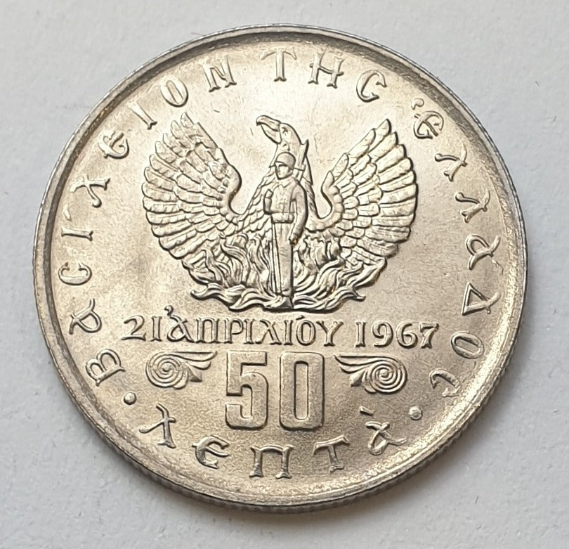Greece - 50 Lepta 1973 A, Constantine II, UNC
