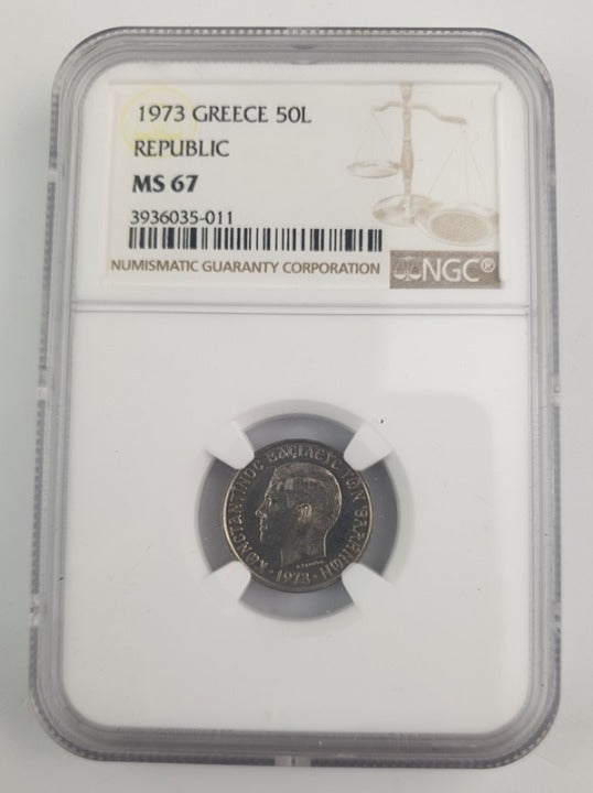 Greece - 50 Lepta 1973 (MS 67), Republic, Constantine II