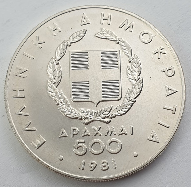Greece - 500 Drachmas 1981, Pan-European Games, Silver