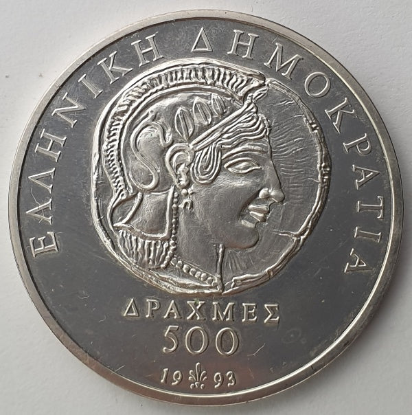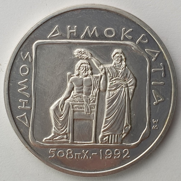 Greece - 500 Drachmas 1993, Democracy, Silver PROOF