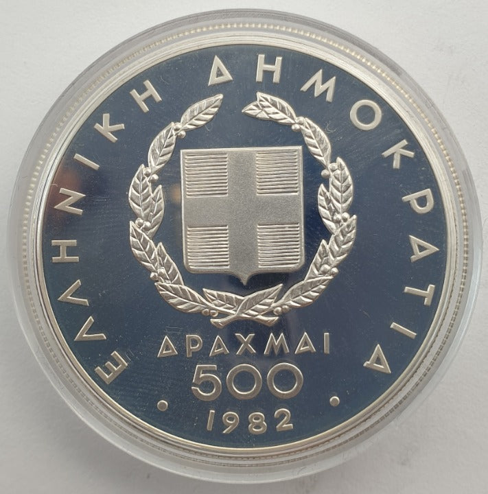 Greece - 500 Drachmes 1982, Pan European Games, Silver, Proof