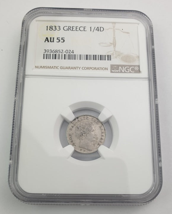 Greece - Quarter Drachma 1833 (AU 55), Othon, Silver